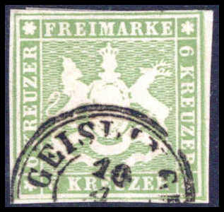 6 Kr., ringsum weißrandiges Kabinettstück mit K3 GEISLINGEN