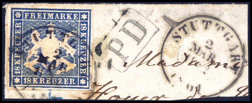 seltensten 18-Kr.-Marke Württembergs"). Katalogpreis: 6.000,-