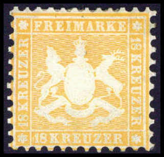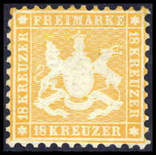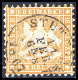 18 Kr., bis auf eine verkürzte Zahnspitze tadelloses Exemplar mit klarem K2 STUTTGART. Katalogpreis: 500,-