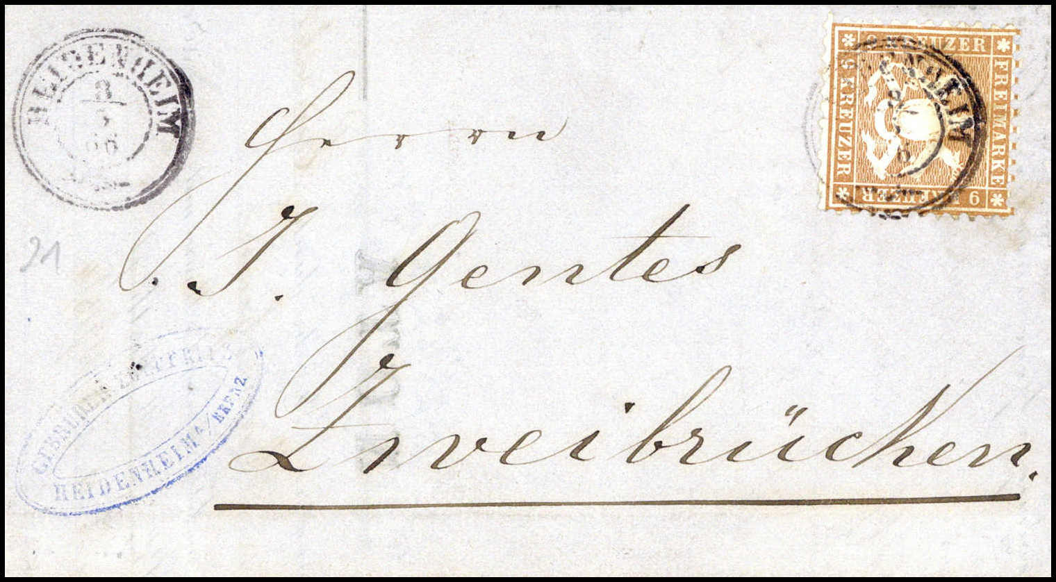 9 Kr., schöner Kabinettbrief mit klarem K3 HEIDENHEIM, sign. Heinrich BPP