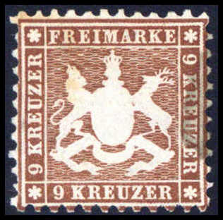 9 Kr. dunkelbraun, ungebrauchtes Prachtstück mit Originalgummi, in leuchtend tiefer Farbe und schöner Prägung (oben Zhg. etwas geglättet). Die dunkelbraune 9 Kr. stellt in ungebrauchter Erhaltung eine ganz große Seltenheit dar. Es dürften