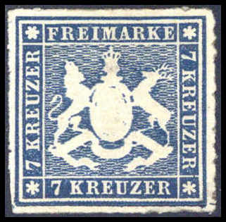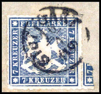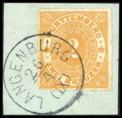 2 Kr., besonders tieffarbiges Exemplar mit K1 STUTTGART (kl. Mgl.). Katalogpreis: 300,-