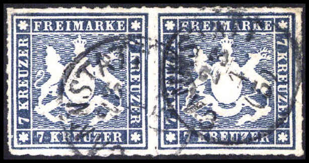 7 Kr., waagr. Kabinettpaar mit klaren K1 CANNSTATT. Katalogpreis: 600,-