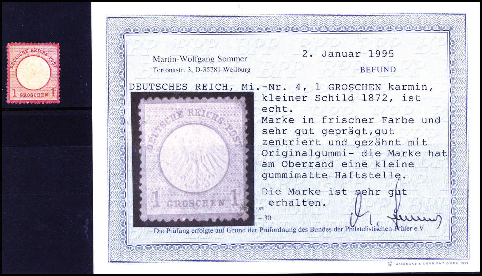 1 Gr., postfrisches Kabinettstück, sign. Hennies BPP, Fotoattest Sommer BPP. Katalogpreis: 2.000,-