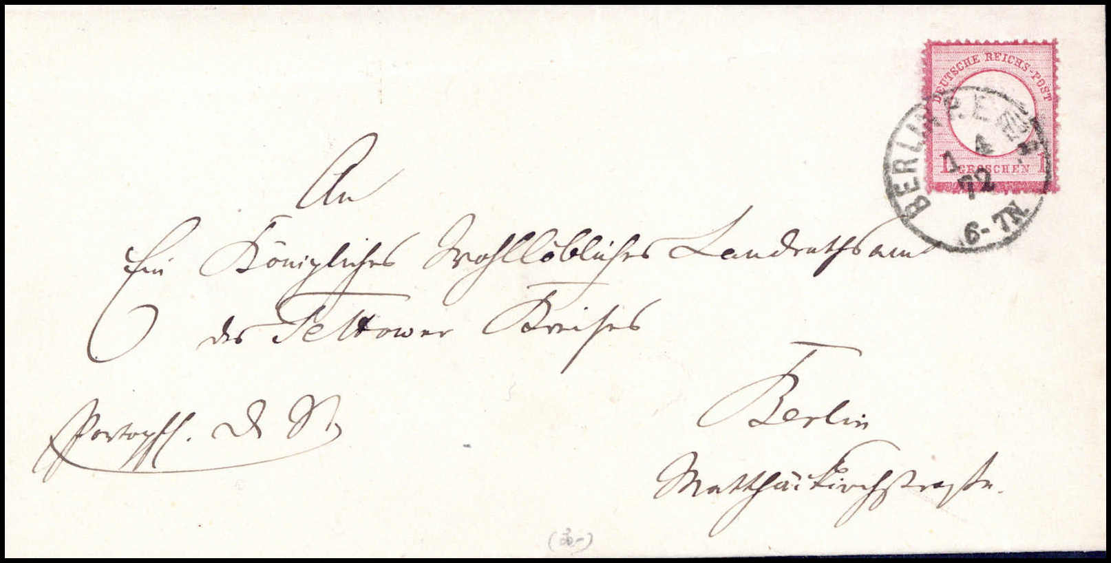 1 Gr., Kabinettstück mit K1 BERLIN B.E.No.8 1/4 72 auf Ortsbrief. Selten, Fotobefund Sommer BPP