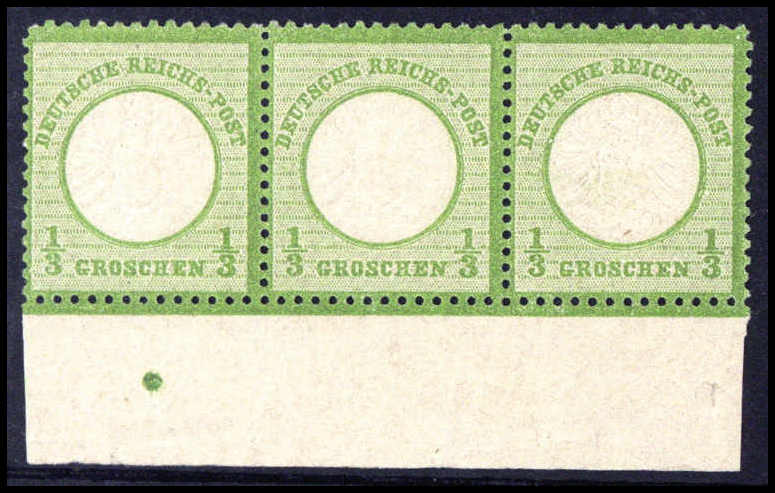 1/3 Gr., postfr. Kabinett-Dreierstreifen (mittlere Marke unbed. Haftstelle) vom Unterrand mit Anlagepunkt. Selten, Fotobefund Krug BPP
