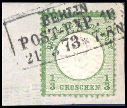 1/3 Gr., Kabinett-Bfstk. mit klarem R3 BERLIN POST-EXP. 10 21/3 73, Fotobefund Sommer BPP. Katalogpreis: 150,-