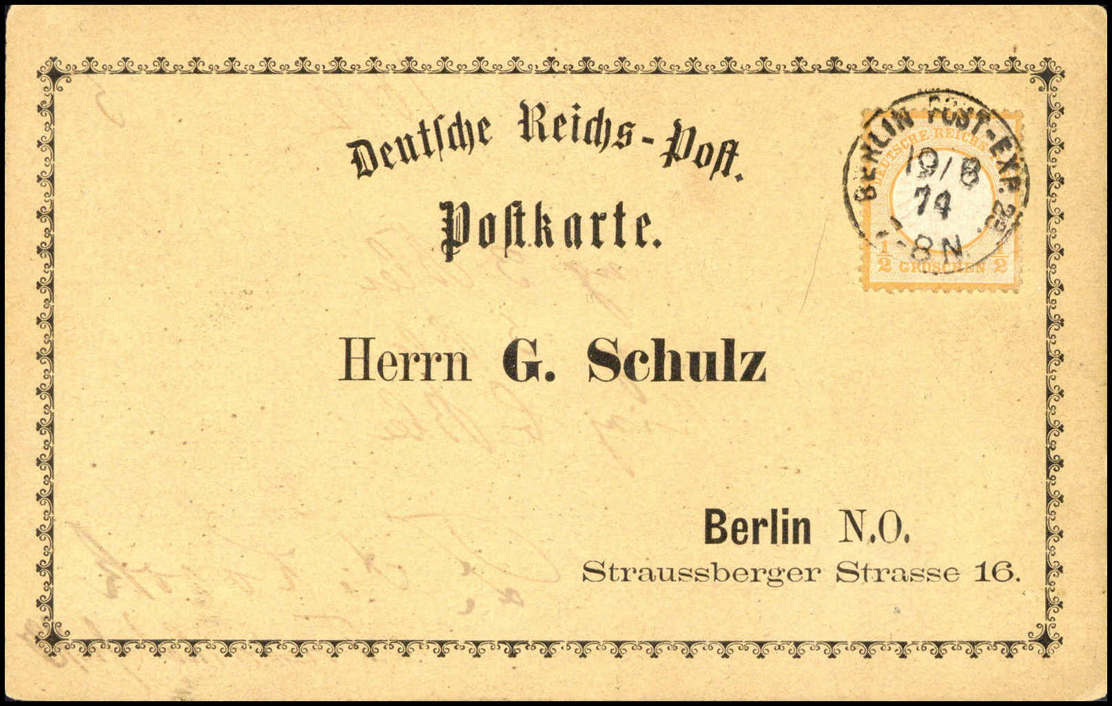Aufgabe dieser Karte betrug das Postkartenporto in die Schweiz nur noch 1 Gr. (1.1.1873). Eine postgeschichtliche Seltenheit ersten Ranges in sehr dekorativer Erhaltung, Fotoattest Krug BPP ("Postkarten in die Schweiz aus der