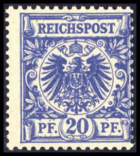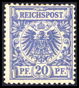 20 Pfg. mittelultramarin, tadellos postfr. Exemplar in perfekter Zähnung. Eine äußerst seltene und unterbewertete Marke (Zuschlag in unserer 131. Auktion EUR 3.700,-), Fotoattest Wiegand BPP. Katalogpreis: 1.500,-+