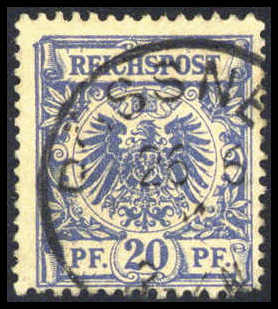 20 Pf mittelultramarin mit seltenem Plattenfehler "linke obere Bildecke abgeschrägt", sauber gebraucht, sign. Zenker BPP, Fotoattest Jäschke-Lantelme BPP. Katalogpreis: 1800,-
