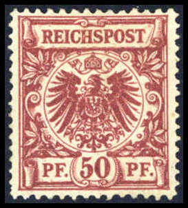 50 Pfg. bräunlichrot, tadellos ungebrauchtes Exemplar, sign. Drahn, Fotoattest Zenker BPP. Katalogpreis: 1.500,-