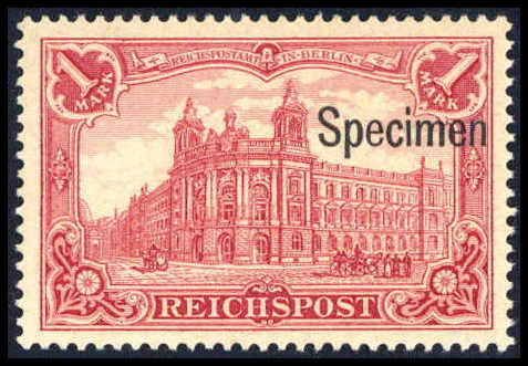 1 Mk., Aufdruck "Specimen", tadellos postfrisch, Fotoattest Oechsner BPP. Katalogpreis: 1.200,-