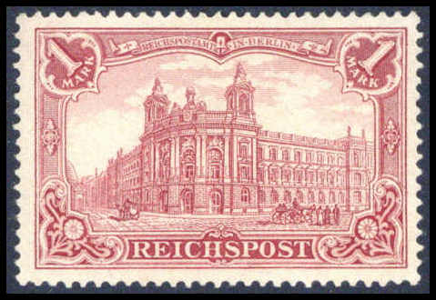 1 Mk. dunkelkarminrot, Plattenfehler II (Kratzer am rechten Bildrand), tadellos ungebraucht. Eine seltene Marke, Fotoattest Oechsner BPP