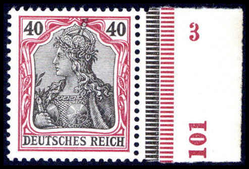 40 Pfg., tadellos postfrisch vom re. Bogenrand, dort mit verschied. Bogen-Nummern. Katalogpreis: 160,-
