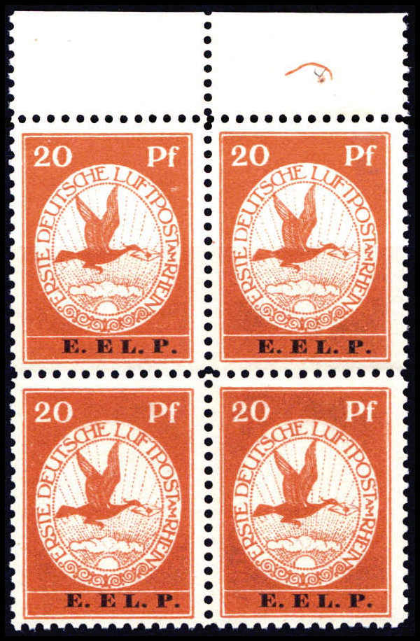 E.EL.P. 20 Pfg, tadellos postfrischer Viererblock mit Oberrand (dort Falz). Katalogpreis: 1800,-
