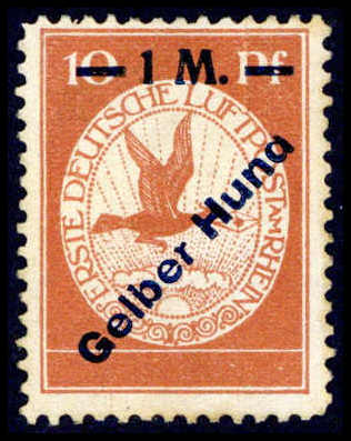 Gelber Hund, Aufdruckfehler "Huna", ungebr. mit NG (Gummi gebräunt), Altsignatur. Katalogpreis: (1500,-)