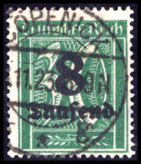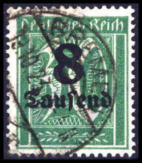 8 T. a. 30 Pfg., Wz. 2, tadellos gestempelt. Attraktives Exemplar der Infla-Rarität, Fotoattest Peschl BPP. Katalogpreis: 8.000,.-