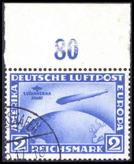 2 Mk., Plattenfehler I ("Mond" über Luftschiff), sauber postfrisch, winz. Eckzahnbug, sign. Dr.Oechsner BPP, Schlegel BPP. Katalogpreis: 3.000,-