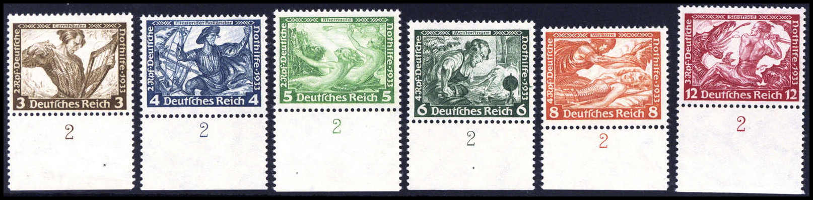Wagner, tadellos postfr. Serie, einheitl. in perfekter Zähnung und alle Marken mit unterem Bogenrand sowie Reihenzahl "2". In dieser Form selten, Fotoattest Schlegel BPP ("Die Erhaltung ist einwandfrei".). Katalogpreis: 2.500,-+