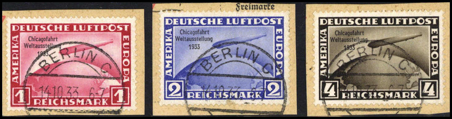Chicagofahrt, tadellose Serie auf drei besonders schön gestplt. Briefstücken. Katalogpreis: 1.000,-+