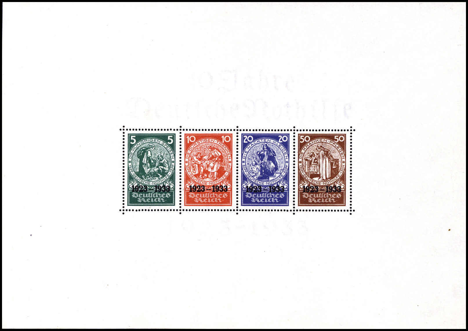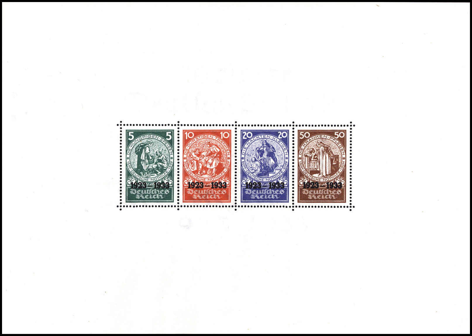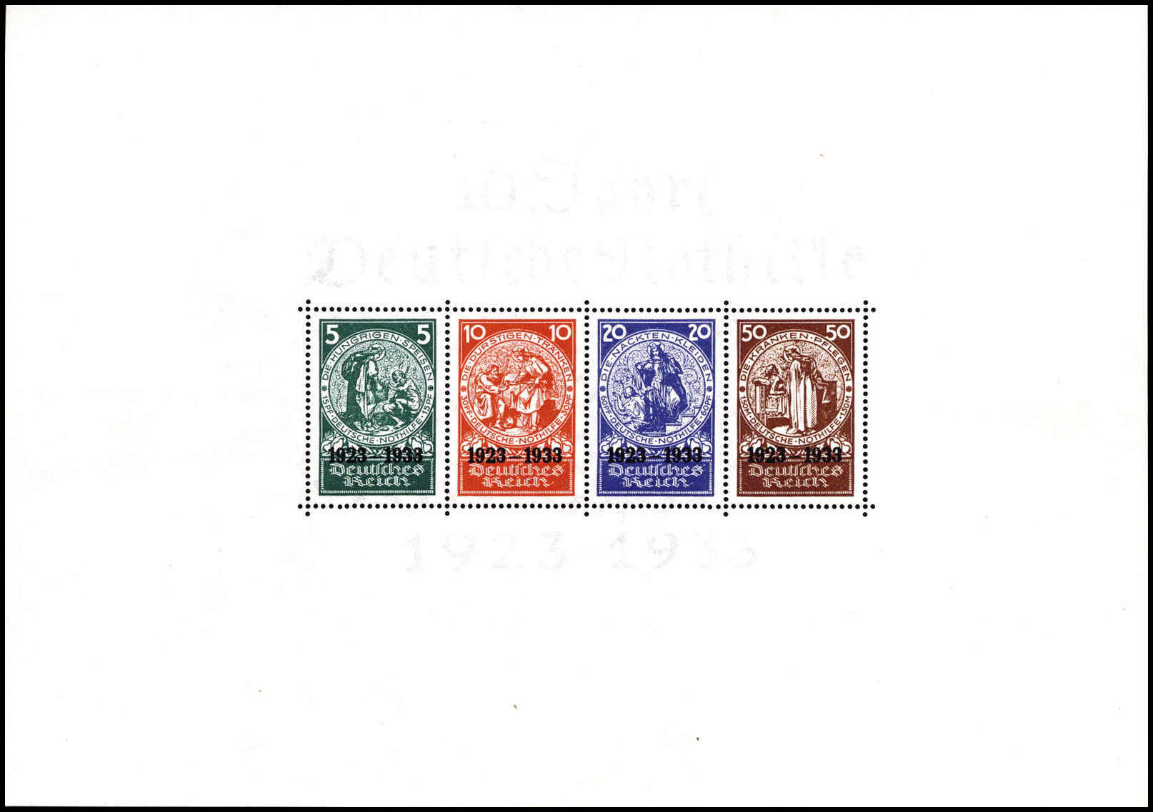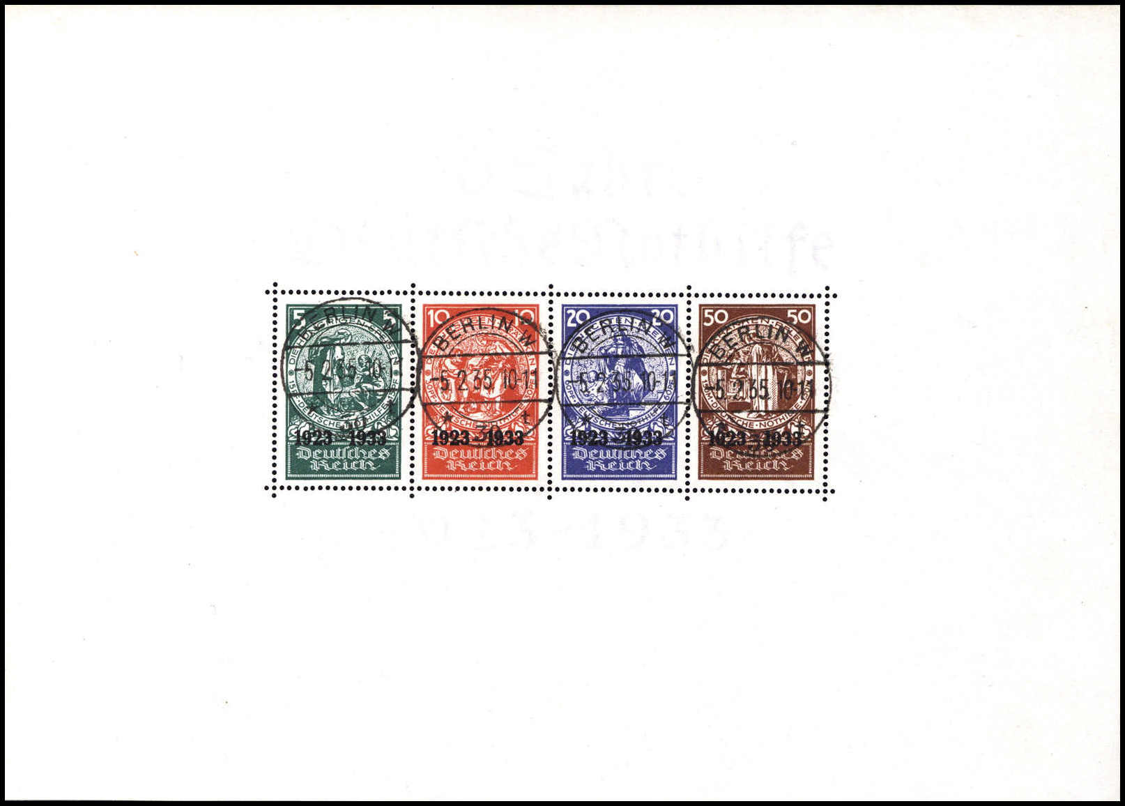 Nothilfe-Block, tadelloses Exemplar mit Entwertung durch vier Tagesstempel BERLIN C2. 25/10 34, Fotoattest Schlegel BPP ("Die Erhaltung ist einwandfrei".). Katalogpreis: 10.000,-