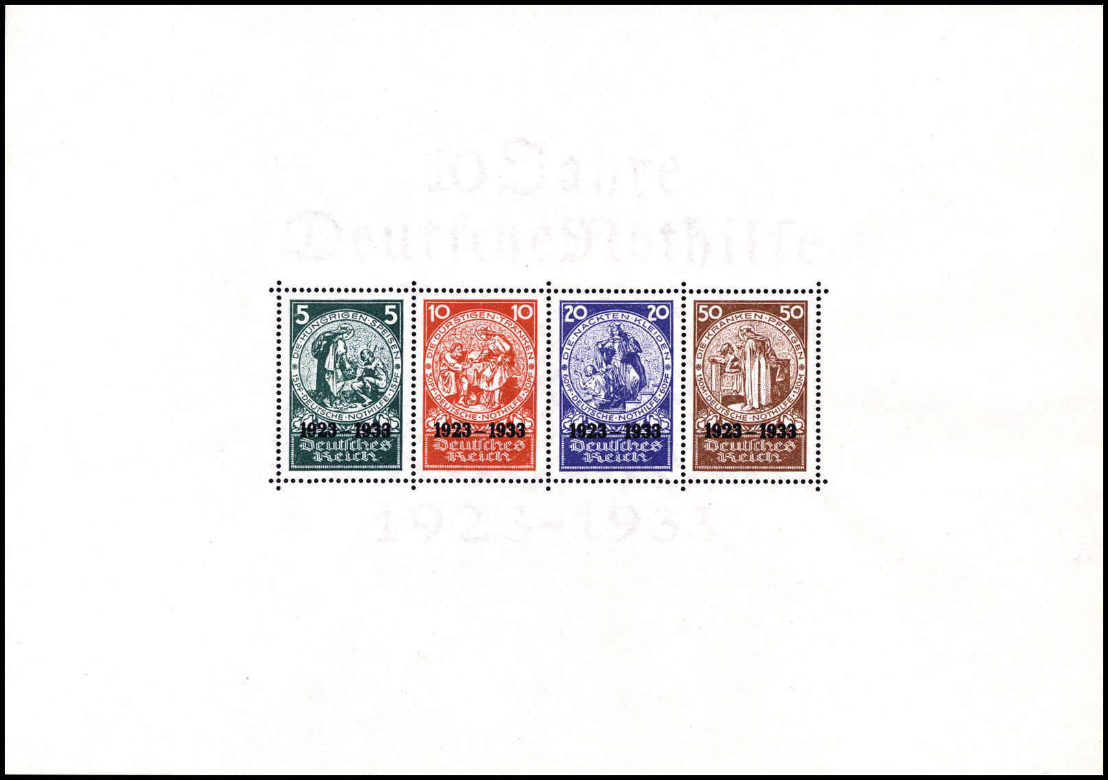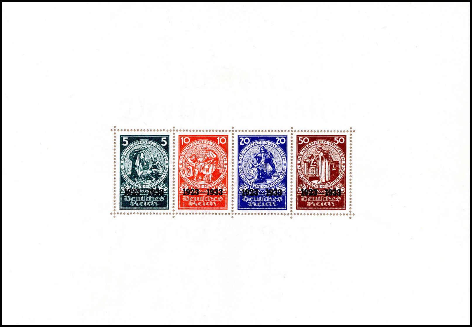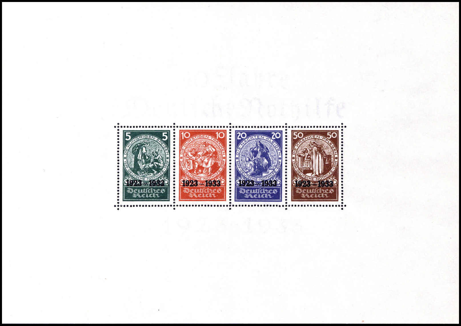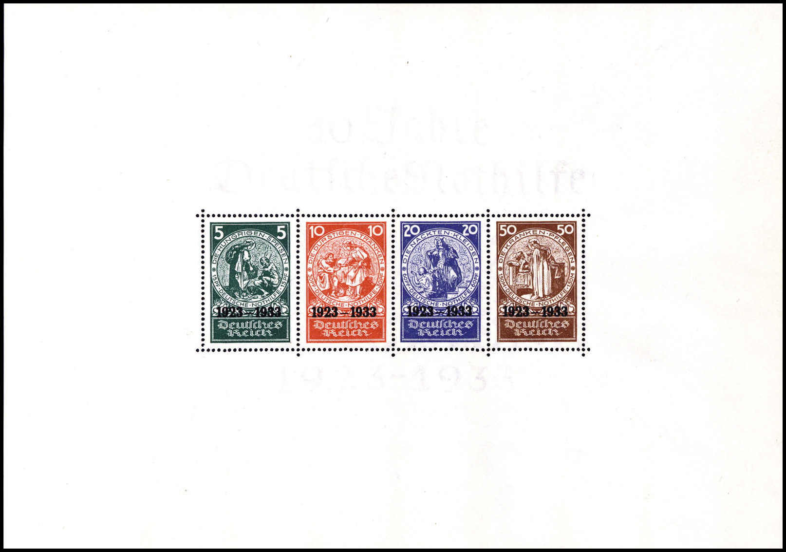 Nothilfe-Block, tadelloses Exemplar mit Entwertung durch vier Tagesstempel BERLIN C2. 25/10 34, Fotoattest Schlegel BPP ("Die Erhaltung ist einwandfrei".). Katalogpreis: 10.000,-