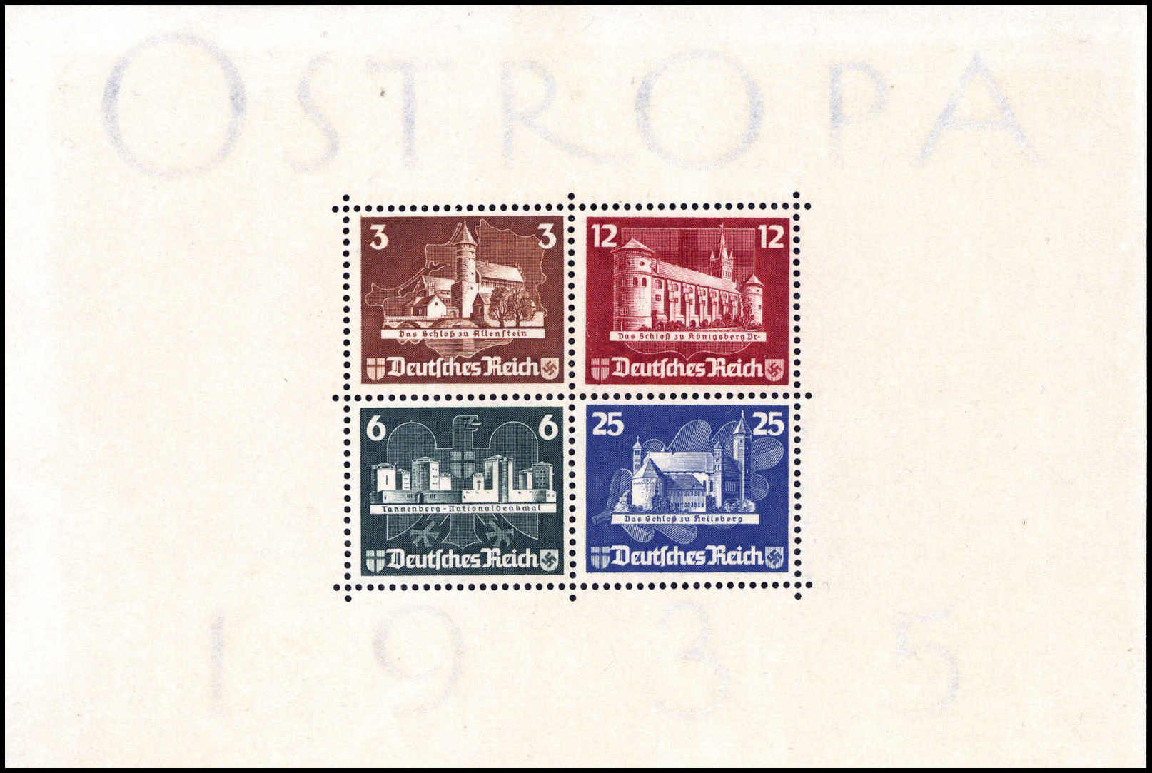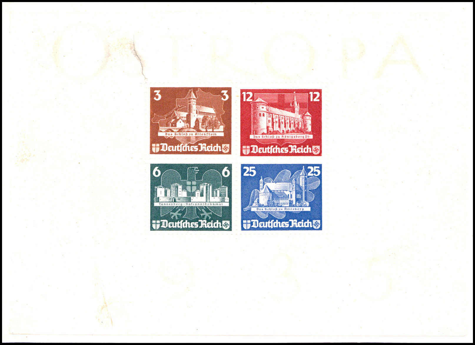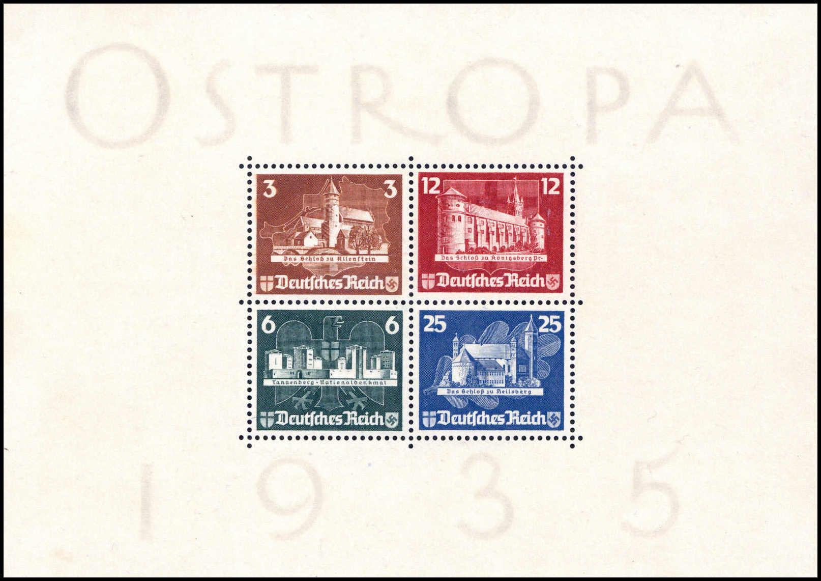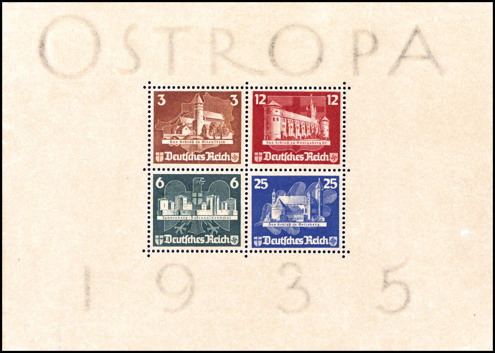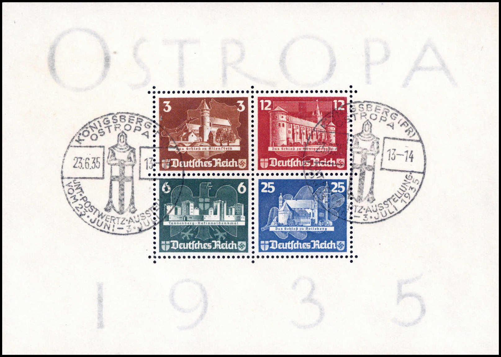OSTROPA-Block, tadelloses Exemplar mit zwei sauber aufges. Ersttags-Ausstellungsstpln. KÖNIGSBERG 23/6 35. Katalogpreis: 1.100,-+