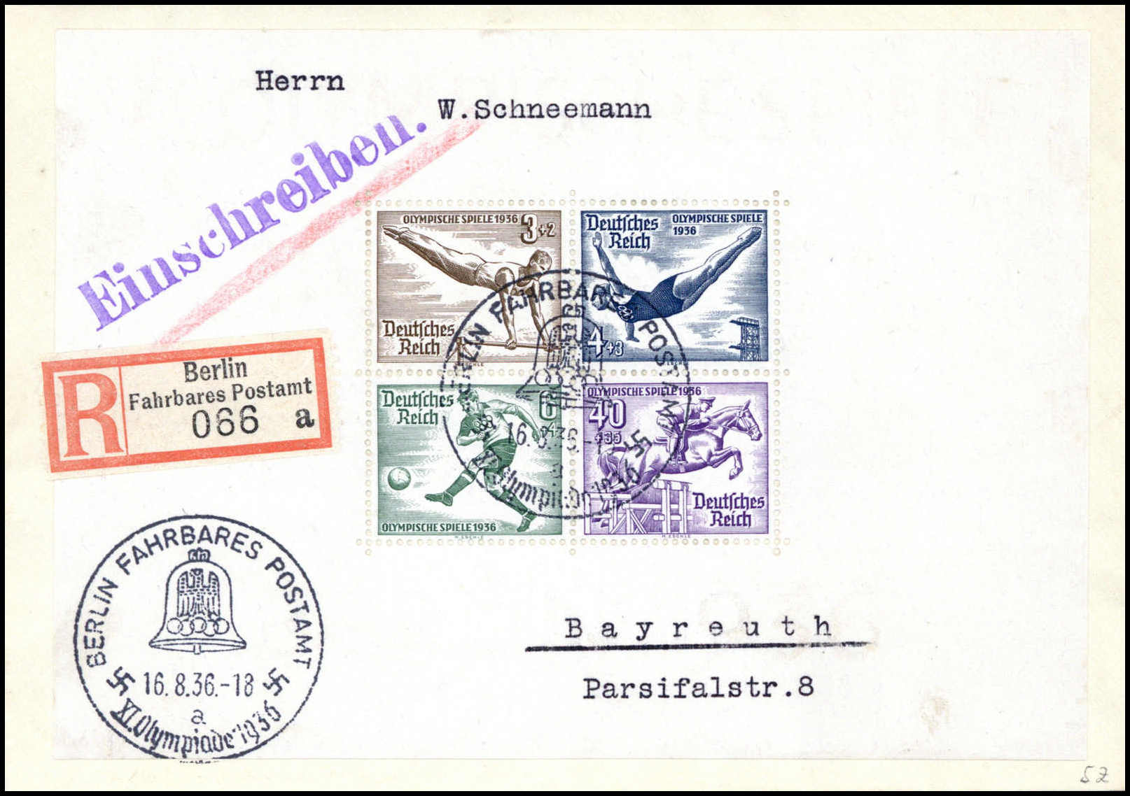 Olympiade-Blockpaar auf zwei tadellosen R-Briefen