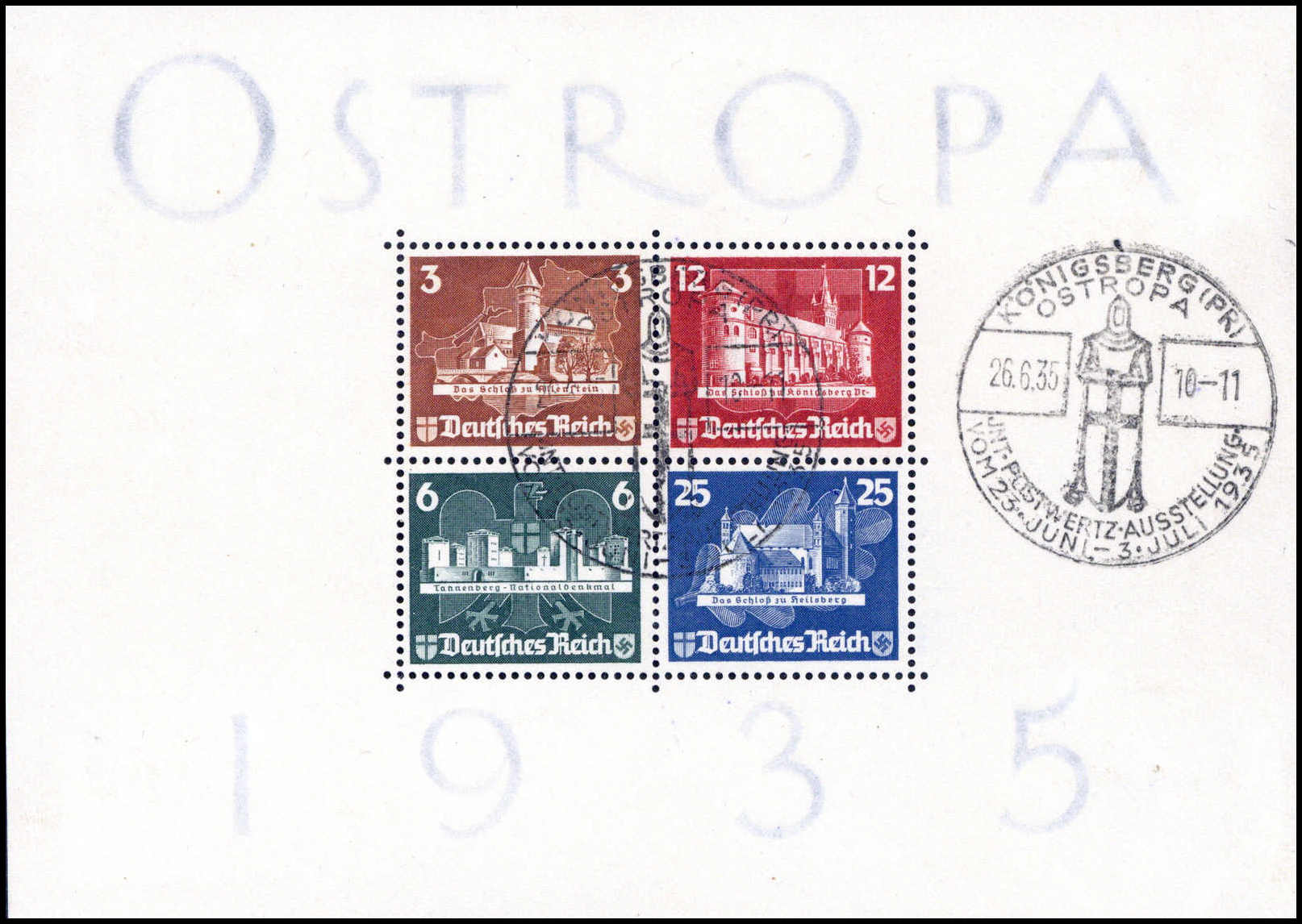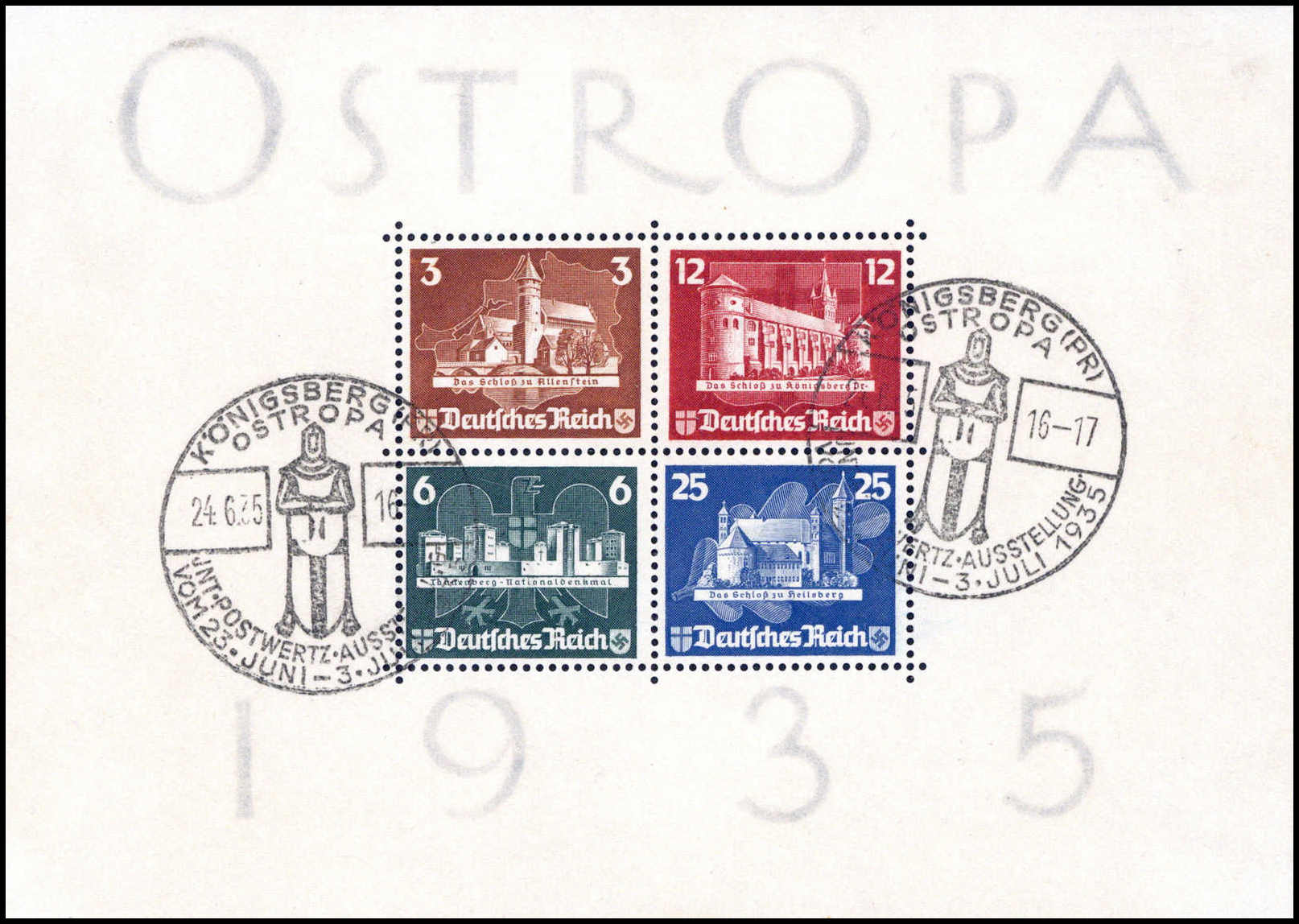 OSTROPA-Block, tadelloses Exemplar mit zwei sauber aufges. Ausstellungs-SST. Katalogpreis: 1.100,-