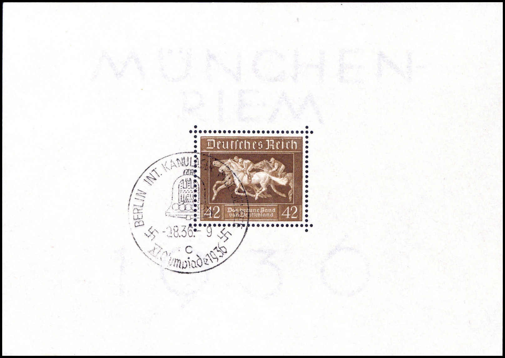 Braunes Band-Block, tadelloses Exemplar mit seltenem Olympia-SST BERLIN INT. KANULAGER MÜGGELSEE 2/8 36