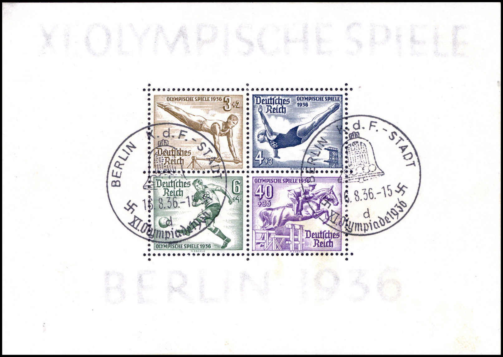 Olympiade-Blockpaar, tadellos mit zwei klaren SST BERLIN K.d.F.-STADT. Katalogpreis: 180,-+