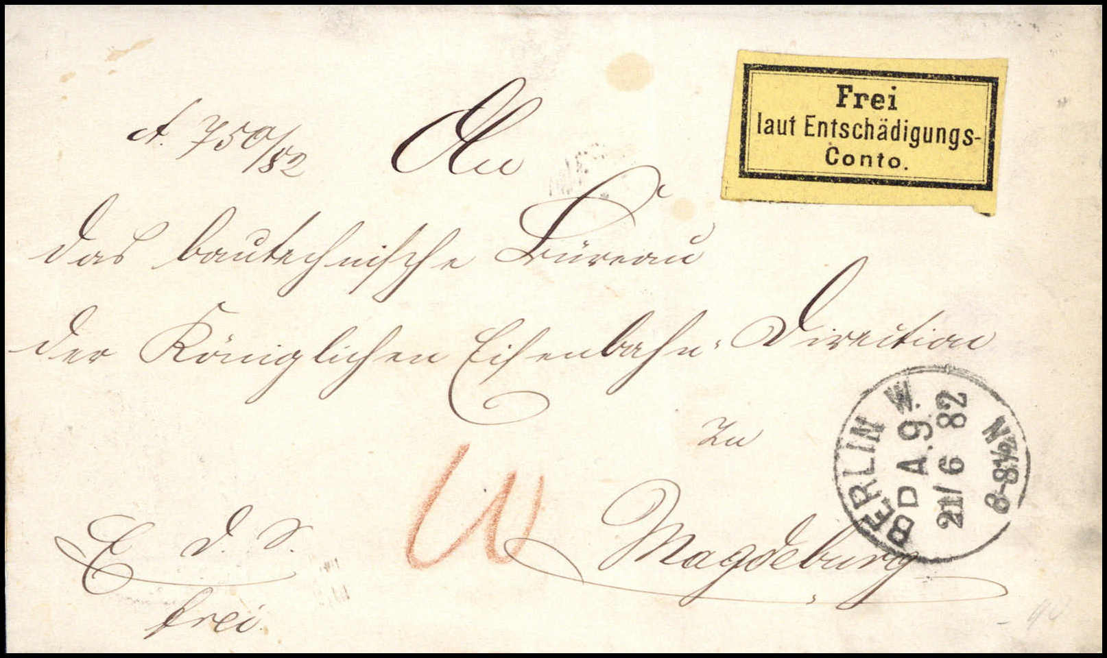 Gebührenzettel, tadelloses Exemplar auf Dienstbrief mit Stempel BERLIN P.A. 9 21/6 82 (seitl. etwas verkürzt)
