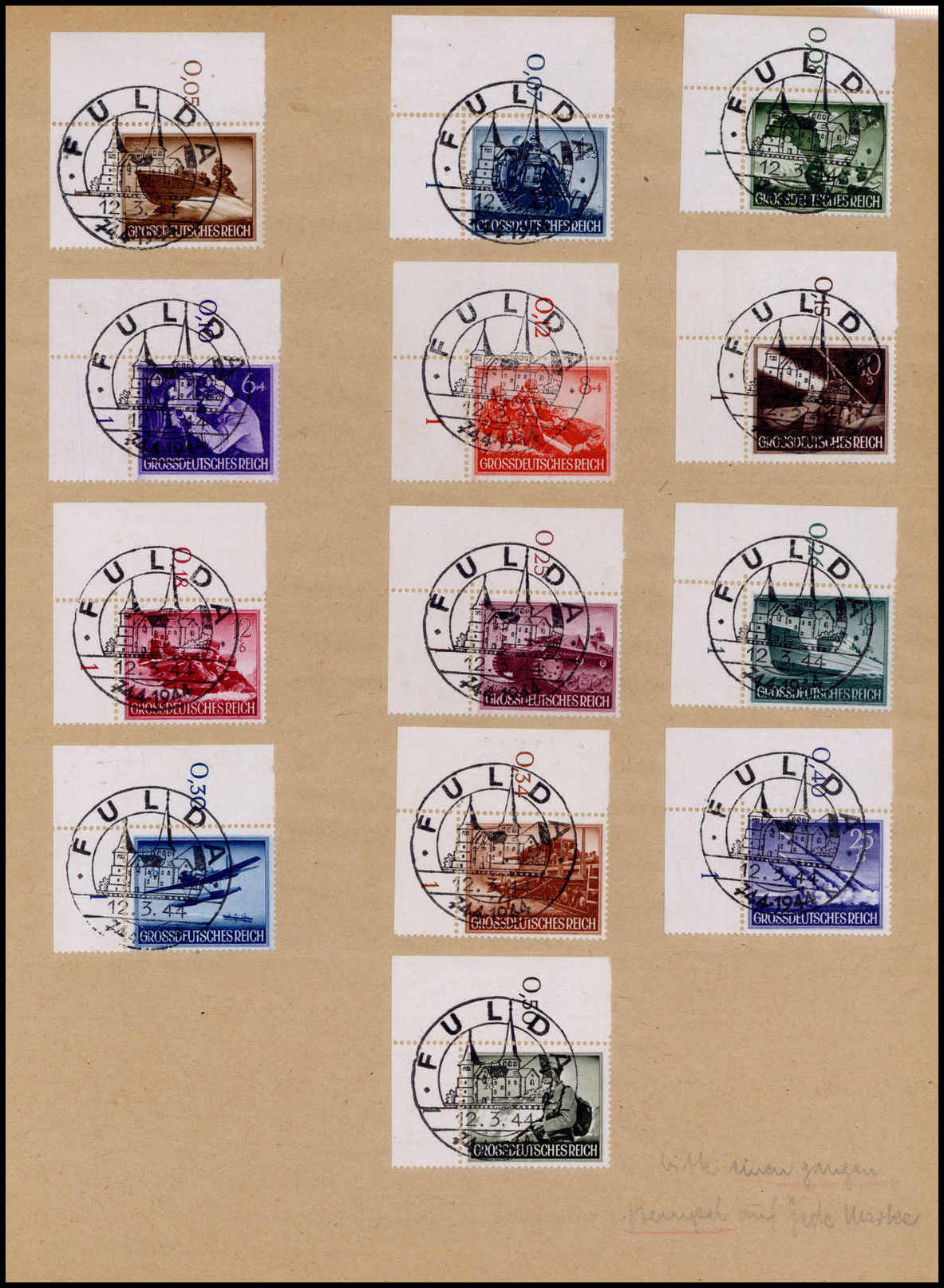 Wehrmacht, Serie aus der li. ob. Bogenecke mit einheitl. Sonderstempel von Fulda (12.3.44) auf Unterlage