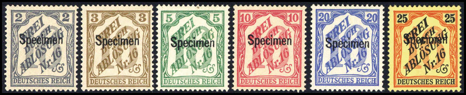 2-25 Pfg., Aufdruck "Specimen", tadellos postfr. Serie. Selten angeboten. Katalogpreis: 750,-+