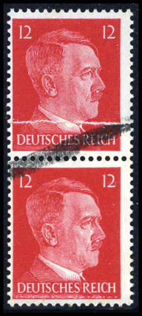 12 Pfg., im senkr. Paar mit geklebter Papierbahn und schwarzem Annullierungsstrich, tadellos postfrisch