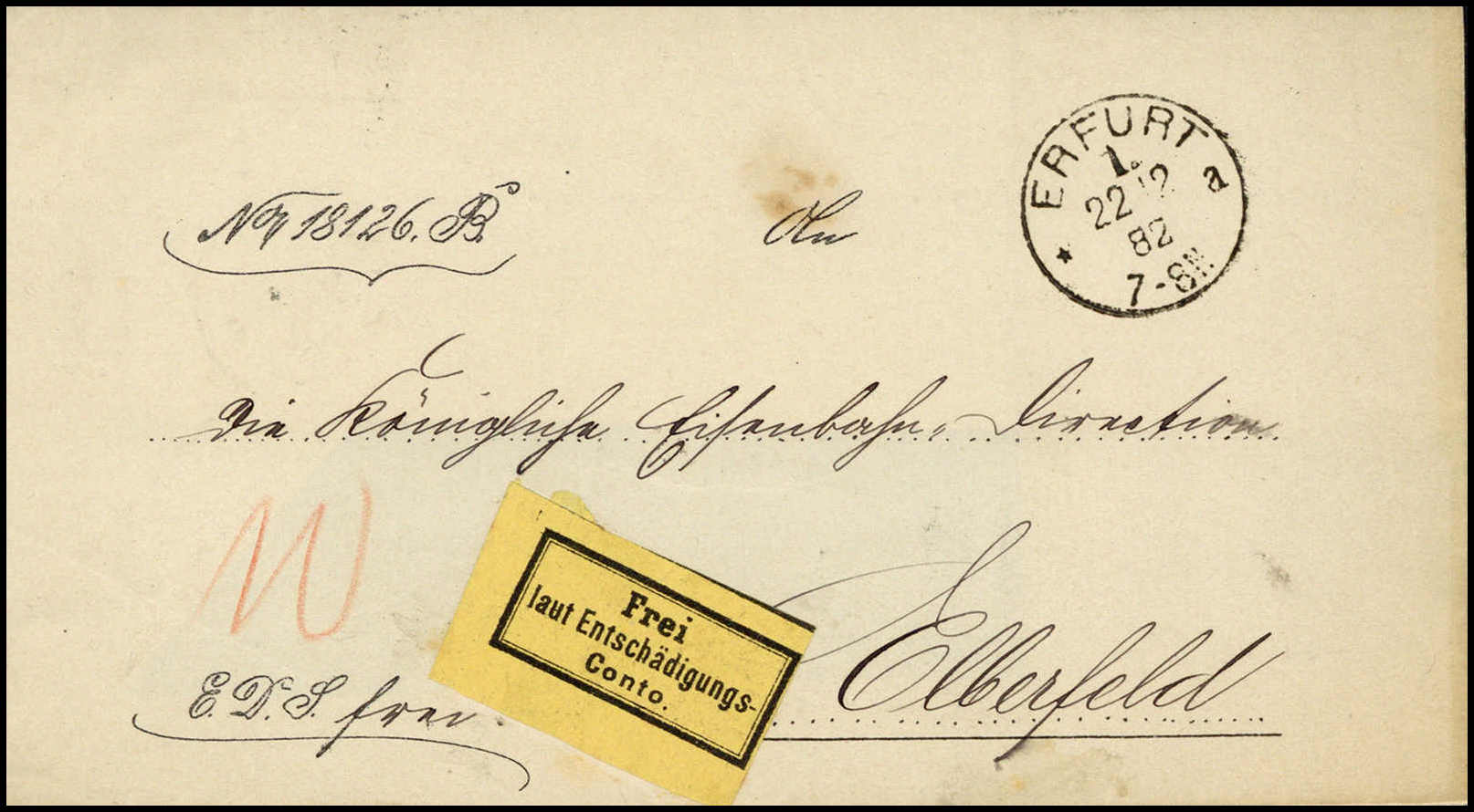 Gebührenzettel, tadelloses Exemplar aus der li. unt. Bogenecke (oben mit Teil der Nebenmarke) auf Brief mit klarem K1 ERFURT 22/12 82, Fotoattest Hennies BPP. Katalogpreis: 400,-+