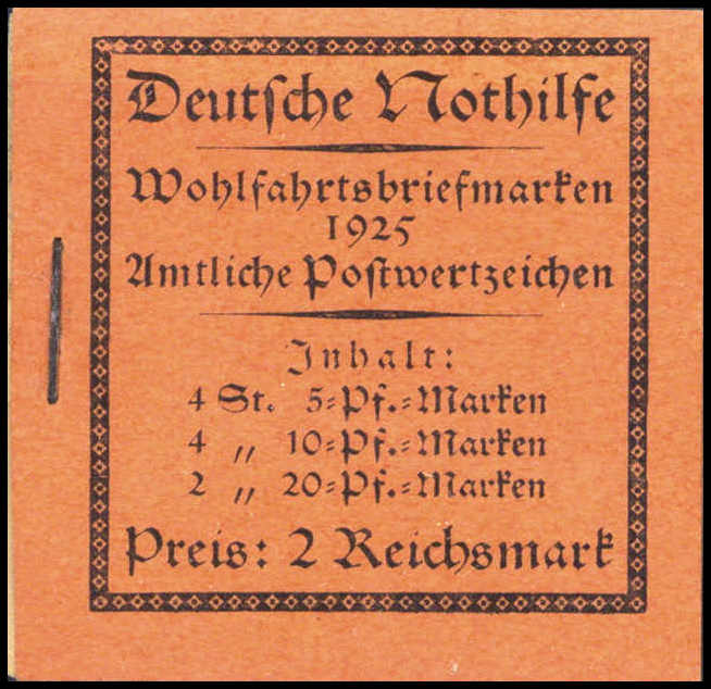 Nothilfe 1925, 1. Deckelseite mit zusätzlicher Zeile: "Amtliche Postwertzeichen", tadellos postfrisch, dabei die Hbl. 41 und 42 mit typisch schräg geschnittenen Seitenrändern und die 20 Pfg. in der hellen Farbe. Eines der seltensten