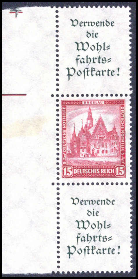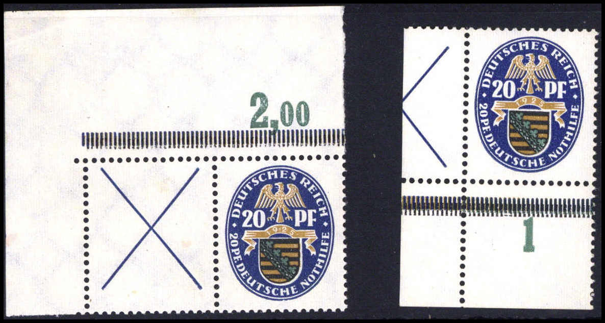 Nothilfe, seltene ZD W20.1 EOL und W20.2 EUL aus der li. ob. bzw. unt. Ecke der offiziell nicht verkauften MHB Ia bzw. II, tadellos postfrisch