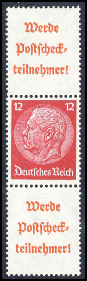 Hindenburg 12 Pfg., drei versch., tadellos postfrische, senkr. Kombinationen. Katalogpreis: 165,-
