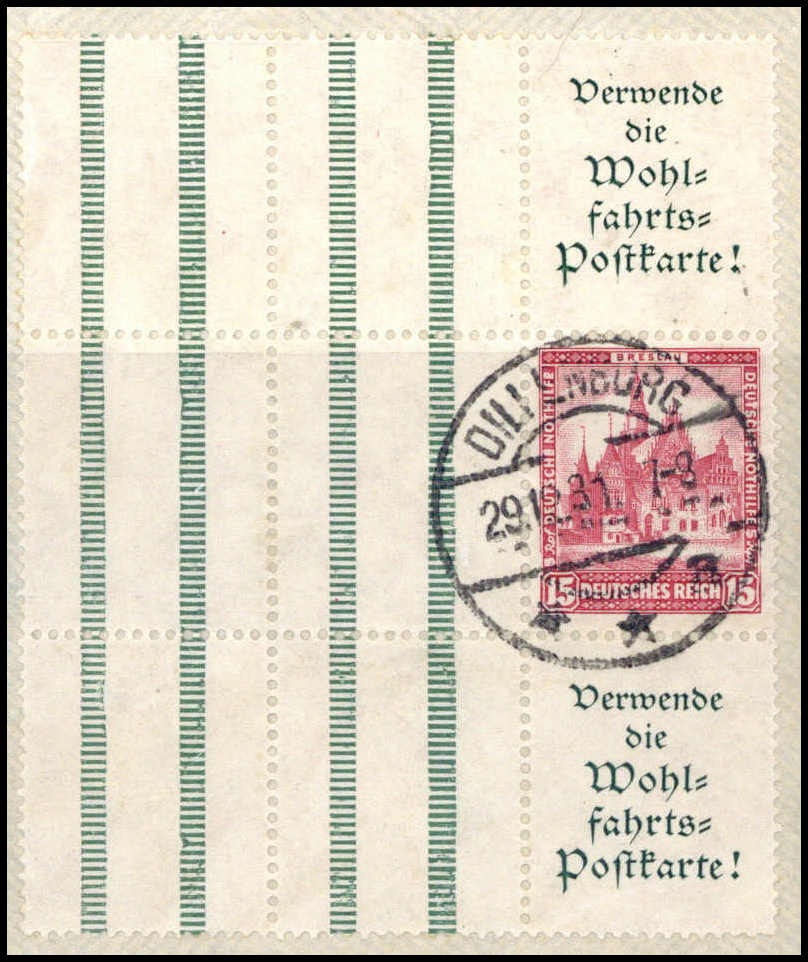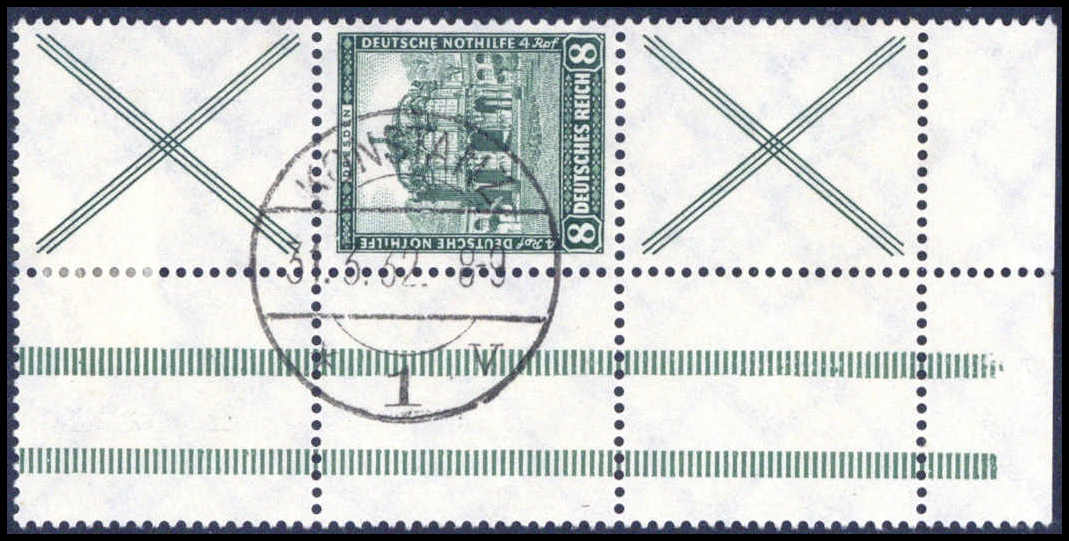 Nothilfe X/8/X, links mit zusätzlich anhängenden Zierfeldern und Unterrand, Befund Schlegel BPP. Katalogpreis: 500,-