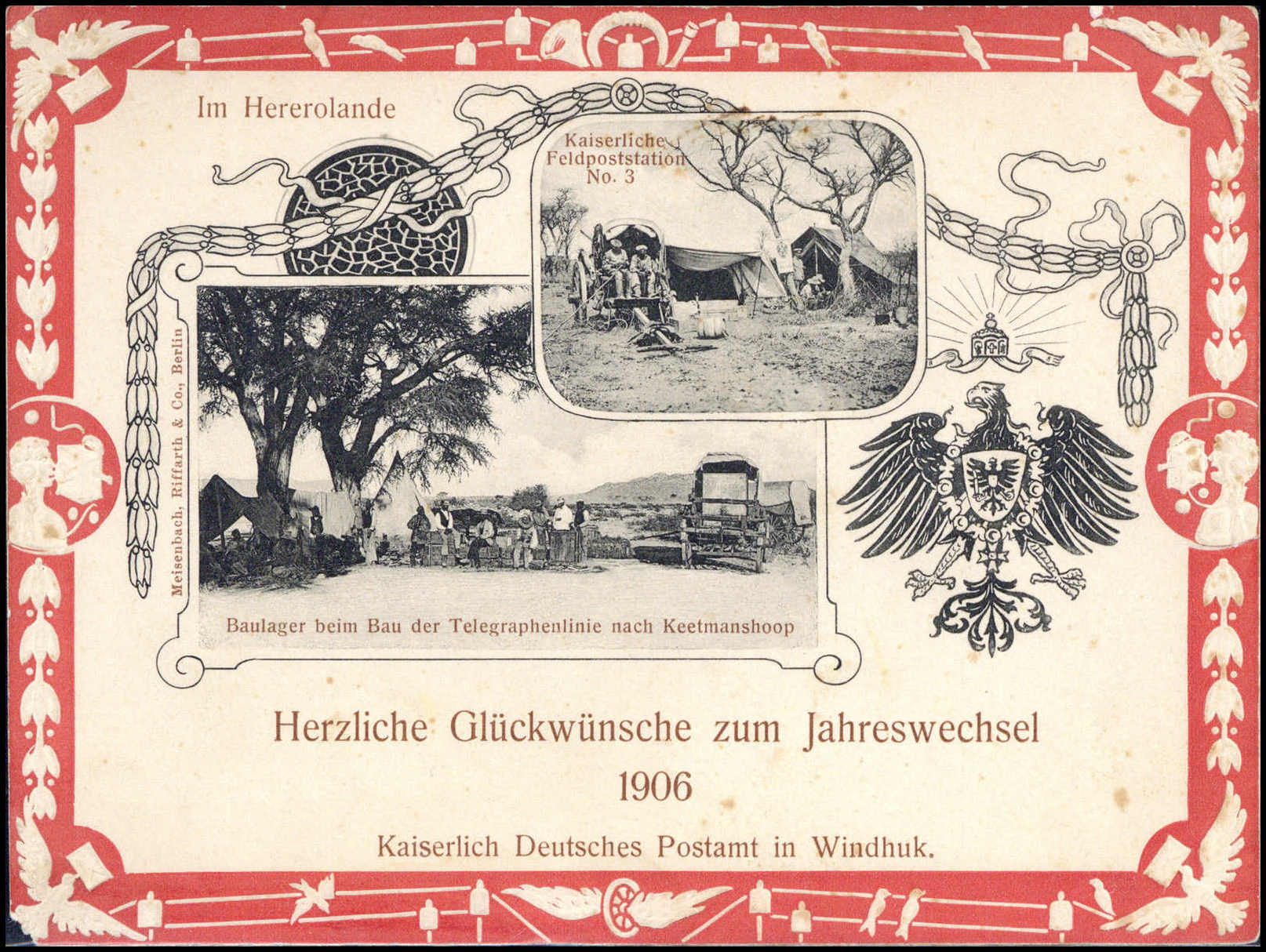 1906, Glückwunschkarte des Postamts Windhuk zum Jahreswechsel 1906