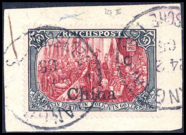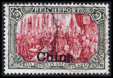 5 Mk., tadelloses Exemplar mit klarem Stempel PEKING 10/6 01. Eine extrem seltene Marke, welche in nahezu jeder China-Sammlung fehlt, Fotoattest Bothe BPP. Katalogpreis: 7.500,-+