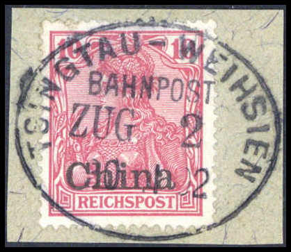 10 Pfg., ideales Bfstk. mit Stempel TSINGTAU-WEIHSIEN BAHNPOST ZUG 2 30/1 02