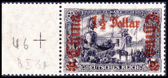 1½ $, Aufdruck dunkelzinnoberrot, tadellos ungebrauchtes Exemplar mit li. Bogenrand und Passerkreuz. Eine seltene und unterbewertete Marke, Fotoattest Steuer BPP. Katalogpreis: 1.500,-+