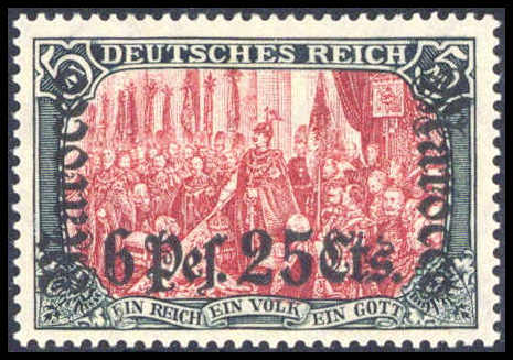 35 C. a. orangeweiß, vorzüglich farbfrisches und perfekt gezähntes Exemplar mit sauber aufges. Stempel ALKASSAR 26/5 14, oben kl. Randrißchen. Eine seltene Marke, Fotobefund Provinsky BPP. Katalogpreis: 1.800,-+