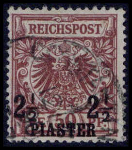 Eingangsstempel. Ganzstücke der Erstauflage der 2½ Pia., welche Ende 1889 in ganz kleiner Auflage nach Constantinopel geliefert wurde, sind außerordentlich selten, Fotoattest Steuer BPP. Katalogpreis: 2.500,-+