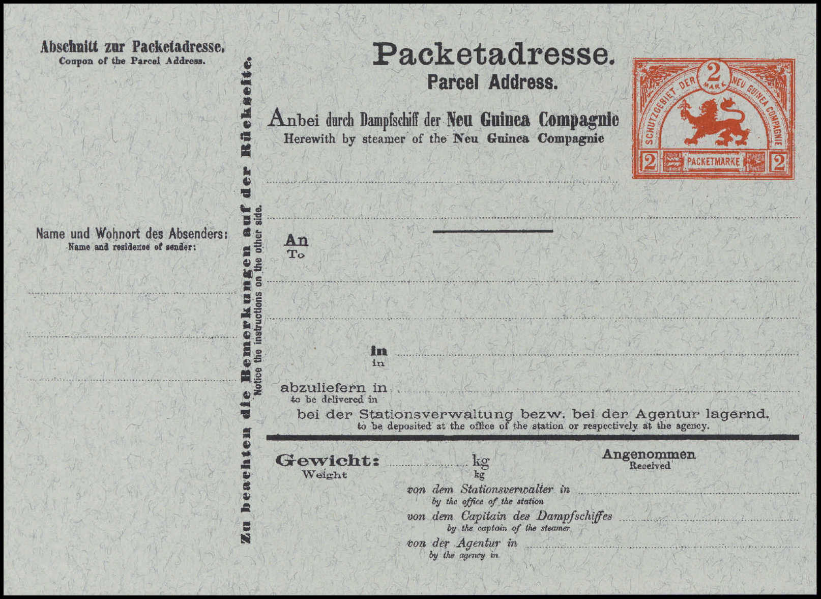 1888, 2 Mk. rot, Paketkarte der Neu-Guinea-Compagnie, perfekt postfrisch