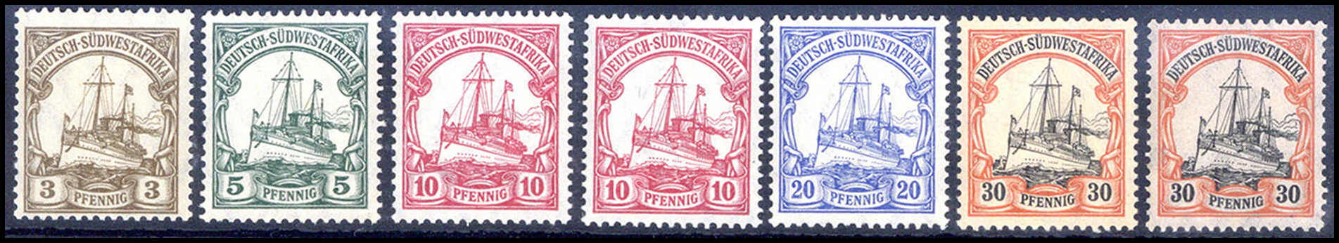 3 Pfg.-5 Mk., tadellos postfrische Serie inkl. Mi.26b und 28x. Katalogpreis: 450,-