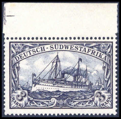 3 Mk., tadellos postfrisches Oberrandstück. Katalogpreis: 150,-+