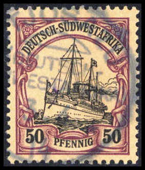 OTJOSAZU 3/4 14, vorzüglich klarer und zentr. Abschlag auf tadelloser 50 Pfg. Eine der ganz großen Stempel-Raritäten Deutsch-Südwestafrikas. Fotoattest Steuer